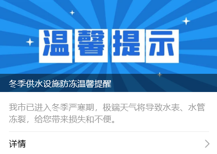 襄陽(yáng)中環(huán)公司呼吁廣大用戶在極寒天氣再次來(lái)臨之際,積極配合,采取防凍保暖措施,共同抵御寒流,保障正常用水。